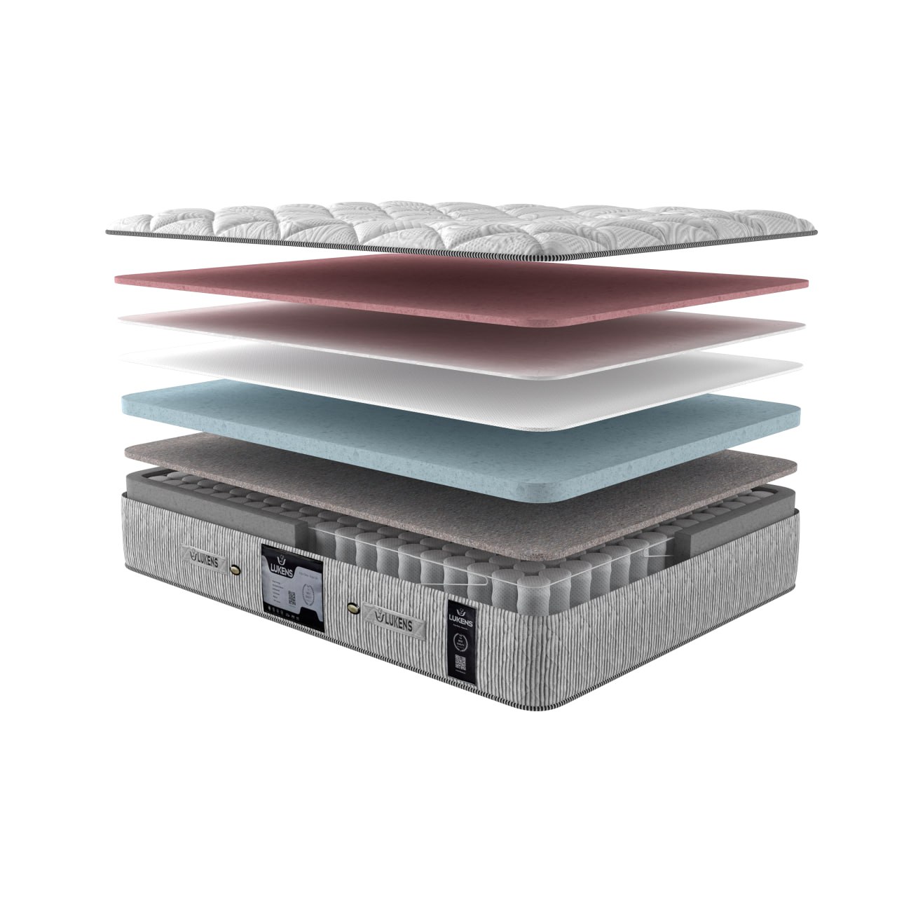 تشک فنر پاکتی لوکنز مدل ویسکو پاکت هارد از پارچه گردباف برجسته و ضد حساسیت و آنتی باکتریال ساخته شده است.